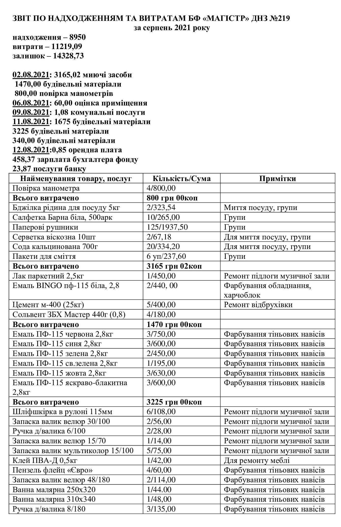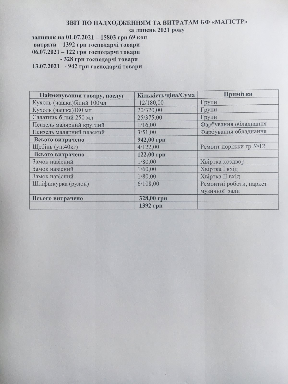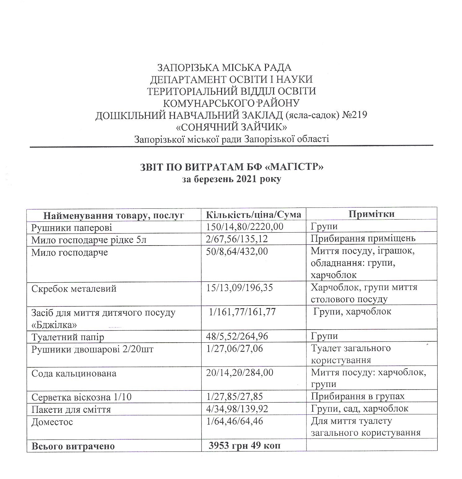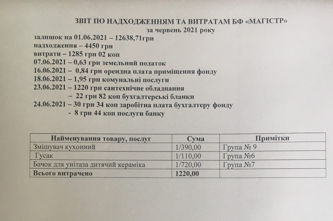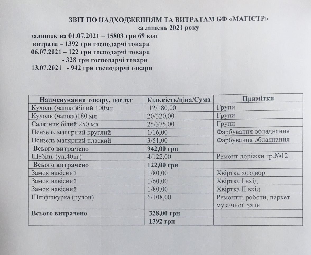 Зведений звіт по витратах БФ Магістр 2018-2019
