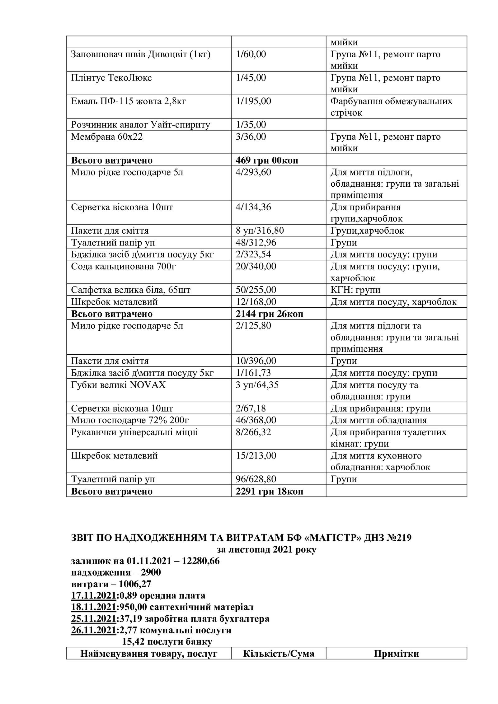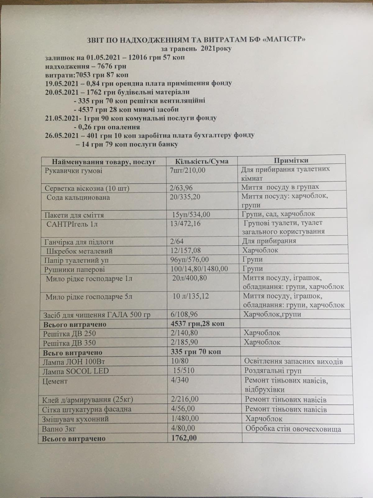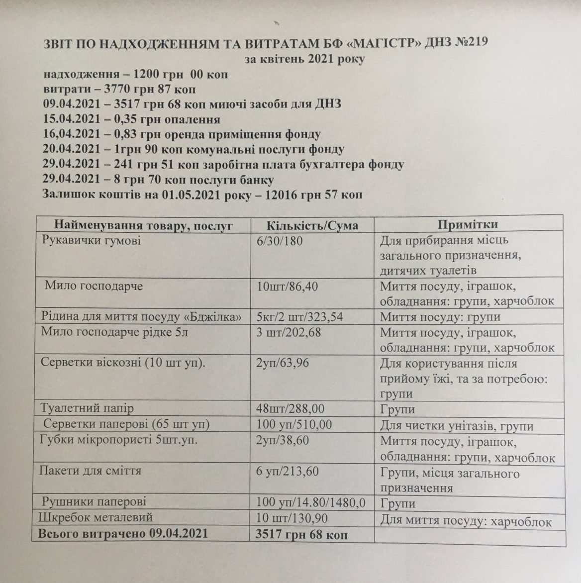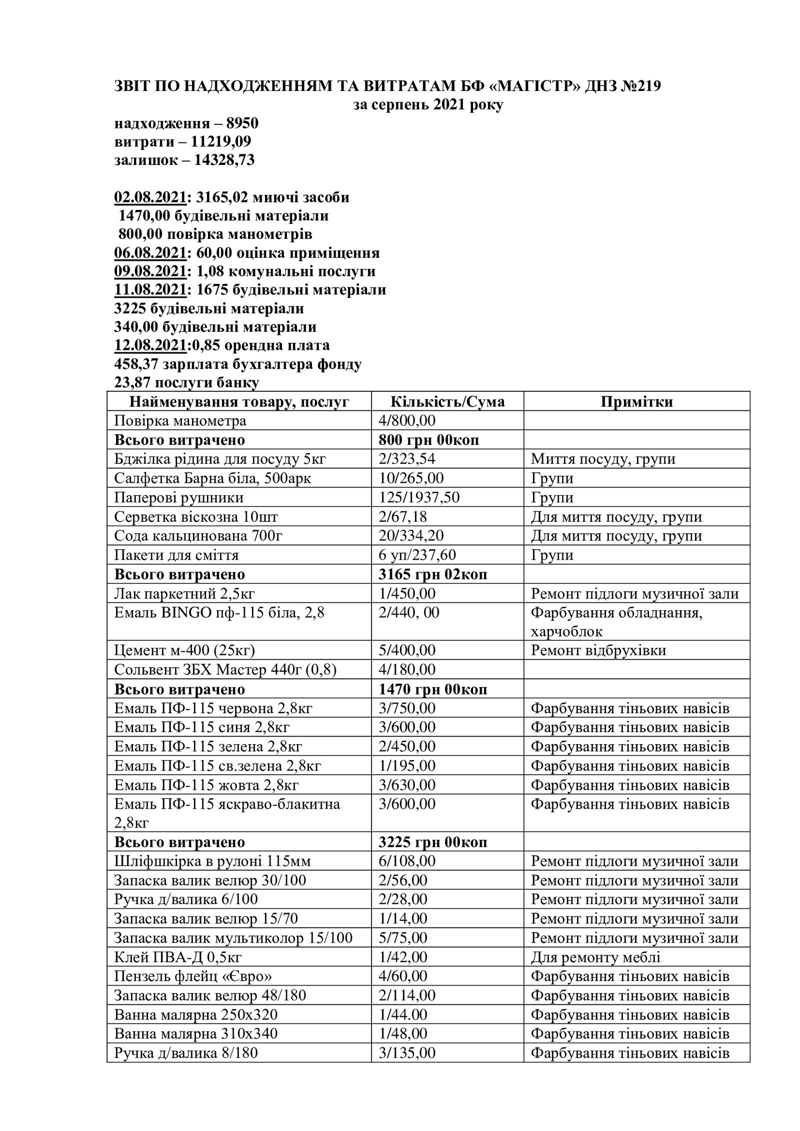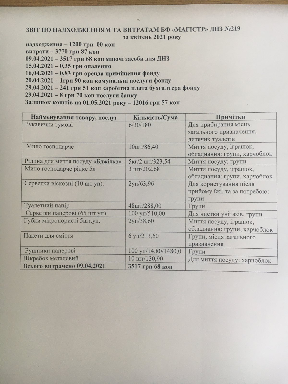 Зведений звіт по витратах БФ Магістр 2018-2019