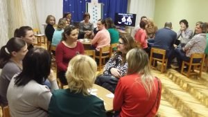 • під час роботи у колах батьки разом з педагогами вчилися відчувати взаємозв’язки між собою та вибудовувати їх разом через позитивну комунікацію, ігри на об’єднання;