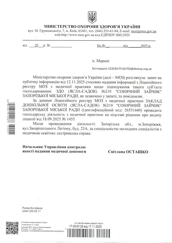 ЗДО №219 “Сонячний зайчик” Дистанційне навчання