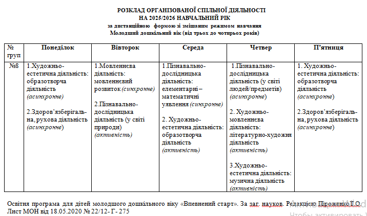 – В кожній віковій групі створено групу з батьками в мережі Viber або Telegram для надання рекомендацій щодо здійснення освітньої роботи за окремими темами (фото-, аудіо-, відео-, письмово тощо) та отримання фотозвітів (за бажанням батьків).