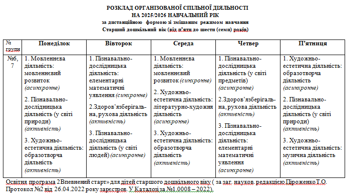 | СТАРШИЙ ДОШКІЛЬНИЙ ВІК |